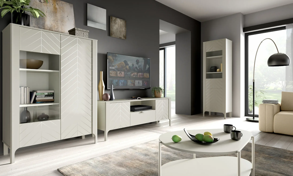 Proste i funkcjonalne bryły, sprawdzą się w salonie sypialni i jadalni. Kolekcja mebli dostępna w kolorze Czarny PAINFLOW oraz Cashmere.
