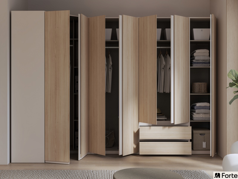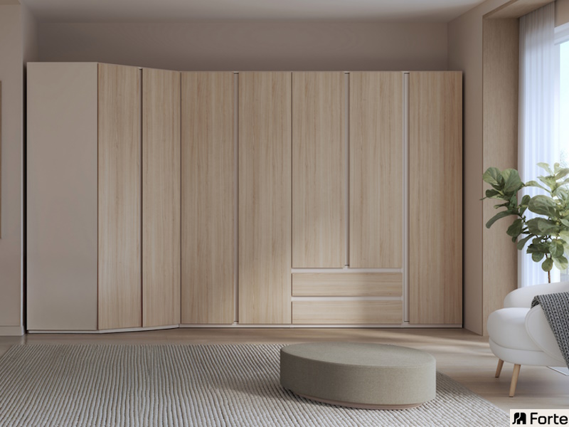 Kolekcja PANOPTIK została zaprojektowana tak, aby dopełniać spokojne, wyciszające aranżacje sypialni. Znajdziesz w niej kilka modeli łóżek z szafkami nocnymi zintegrowanymi z korpusem oraz szafy uchylne w różnych rozmiarach. To wszystko, czego potrzebujesz do stworzenia komfortowej przestrzeni. A estetyka? Zwróć uwagę na detale i połączenie kolorystyczne dekoru Dąb Riva i Piaskowego.
