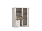 - Mebel posiada szufladę, cztery zamykane półki oraz dodatkowo posiada dwie otwarte półki, dzięki czemu gwarantuje odpowiednio dużo miejsca do przechowywania różnych rzeczy i eksponowania dekoracji