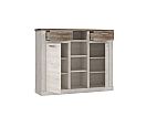 Wysoka komoda w stylu prowansalskim o szerokości 160 cm i wykonana w subtelnym dekorze Pinia Biała ze wstawkami Dębu Antycznego doskonale sprawdzi się zarówno w jasnych, jak i ciemnych aranżacjach pomieszczeń. Dzięki pojemnym szufladom, szafkom i otwartym półkom zapewnia dużo miejsca do przechowywania i eksponowania ulubionych dekoracji.