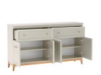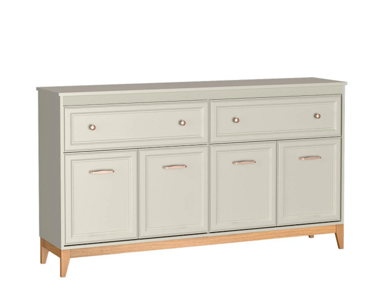 Windsor-2 to komoda, która zachwyca klasycznym designem i nowoczesną wygodą użytkowania. Jej subtelny odcień kaszmiru, w połączeniu z elementami w kolorze dębu naturalnego, tworzy harmonijną kompozycję, która doskonale wpisuje się zarówno w tradycyjne, jak i nowoczesne wnętrza.