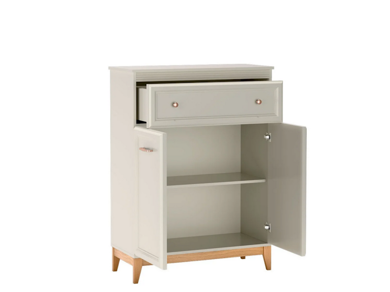 Windsor-4 to smukła i elegancka komoda, która łączy w sobie wyrafinowany design i wygodę użytkowania. Dzięki wysokiej bryle (125,5 cm) zapewnia dużo miejsca do przechowywania, jednocześnie nie zajmując wiele przestrzeni.