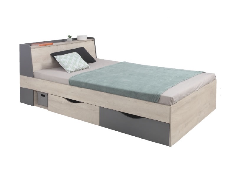 Łóżko DL-15 L/P - 120x200 ze stelażem (płyta z otworami) i szufladami.