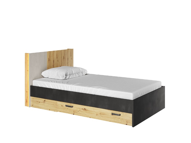 Łóżko z jedną szufladą na pościel, półką w zagłówku i oświetleniem ledowym