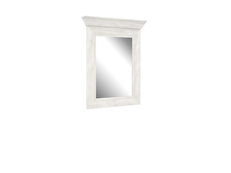 Te stylizowane, niewielkie lustro będzie uzupełnieniem aranżacji przedpokoju. Dekoracyjnie wyfrezowana górna listwa oraz biały, postarzany dekor nawiązują do stylu całej kolekcji, dzięki czemu stworzysz kompletny i spójny zestaw.