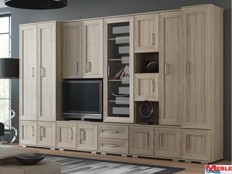 Meblościanka klasyczna o super pakowności w ciepłym kolorze dąb sonoma.