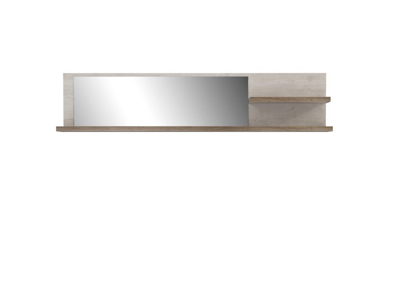 Wisząca półka z lustrem w dekorze Pinia Biała połączonym z Dębem Antycznym to idealne uzupełnienie przestrzeni nad komodą czy szafką RTV, dlatego świetnie sprawdzi się w salonie i jadalni. Piękne wyeksponowanie książek lub ulubionych akcesoriów zapewni dołączone do zestawu lustro.