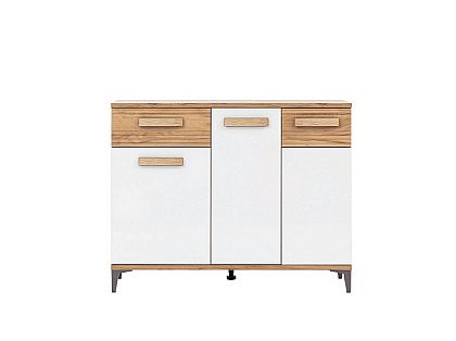 1. Korpus wykonany jest z płyty wiórowej laminowanej o grubości 16 mm. 2. Blat korpusu wykonany jest z płyty wiórowej laminowanej o grubości 22 mm. 3. Fronty wykonane z płyty wiórowej laminowanej o grubości 16 mm. / MDF 18 mm. 4. Fronty oklejone folią PCV. 5. Półki wewnętrzne wykonane z płyty wiórowej laminowanej o grubości 16 mm. 6. Półka wisząca wykonana z płyty wiórowej laminowanej o grubości 16 mm. / 22 mm. 13. System cichego domyku drzwi w standardzie zintegrowany z zawiasem. 17. D. ( liczba drzwi zastosowanych w bryle ) , S ( liczba szuflad zastosowanych w bryle ) , P. ( liczba pojemników zastosowanych w bryle ) 16. Dodatkowy symbol L/P umieszczony w nazwie bryły oznacza że front można zamontować z lewej lub prawej strony korpusu. 7. Blat ławy oraz stołu wykonany jest z płyty wiórowej laminowanej o grubości 22 mm. 8. Zawiasy ᵩ 35 regulowane w trzech płaszczyznach. 9. Stopki plastikowe z regulacją. 10. Uchwyty metalowe. 11. Szuflady prowadnica kulkowa GTV z pełnym wysuwem.