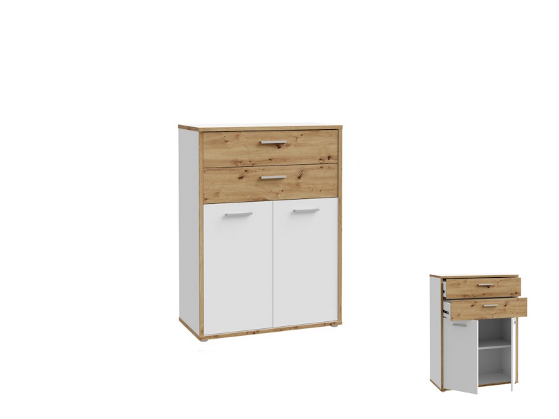 Szafka w nowoczesnych dekorach sprawdzi się świetnie w wielu wnętrzach. Praktyczne półki oraz szuflady pomieszczą przedmioty które chcemy ukryć, a blat pozwoli na wyeksponowanie dekoracji. Ten mebel doskonale będzie współgrać z innymi meblami z tej samej kolekcji.