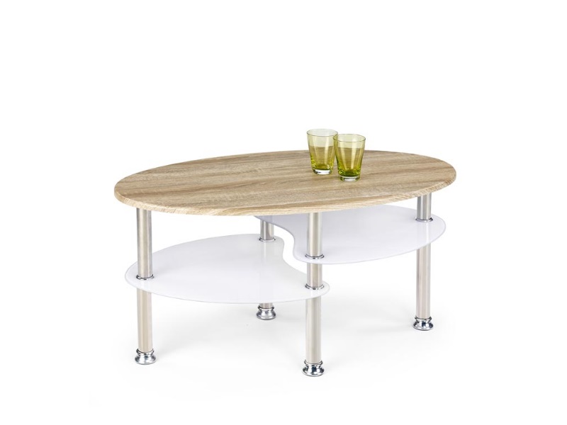 materiał: szkło / MDF laminowany / stal nierdzewna, kolor: dąb sonoma / ekstra biały
