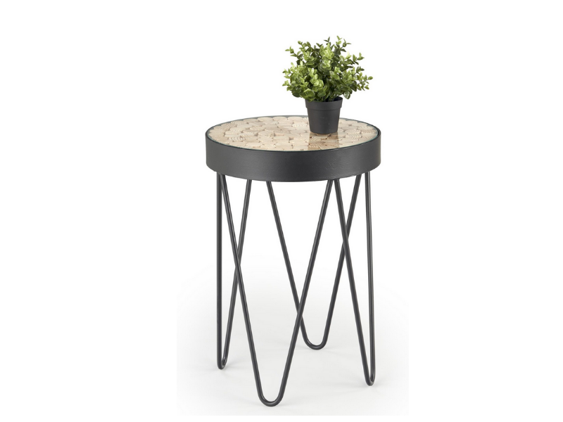 wymiary: ø41/59 cmmateriał: szkło / drewno lite modrzewiowe / stal malowana proszkowokolor: czarny