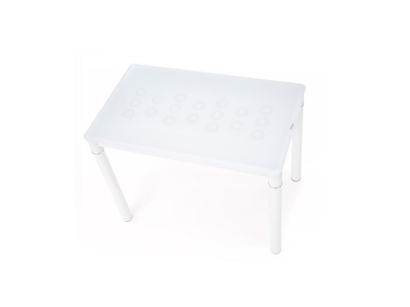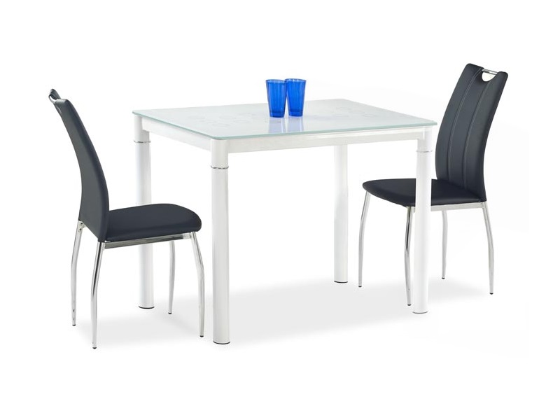 Stół Argus materiał: szkło/stal malowana kolor:blat-szkło-mleczne nogi-białe