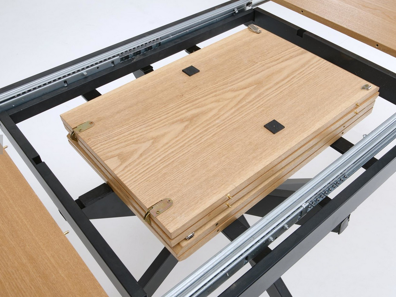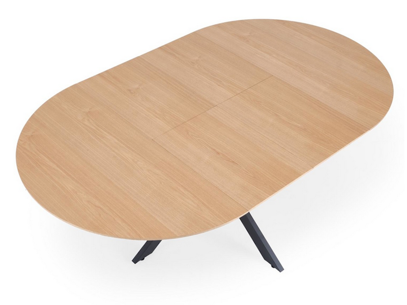 wymiary: 120-200/120/75 cm, stół rozkładany, materiał: MDF + okleina naturalna / stal malowana proszkowo, kolor: blat - naturalny, nogi - czarny