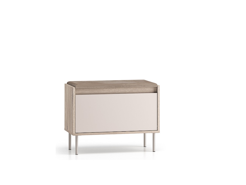 Dzięki miękkiej, tapicerowanej górze mebla komfortowo usiądziesz i spokojnie założysz lub zdejmiesz buty. Dodatkowo jasny, welurowy materiał wprowadzi do wnętrza dużą dozę elegancji. Pod siedziskiem znajduje się ukryty schowek. To idealne miejsce na akcesoria do butów itp.