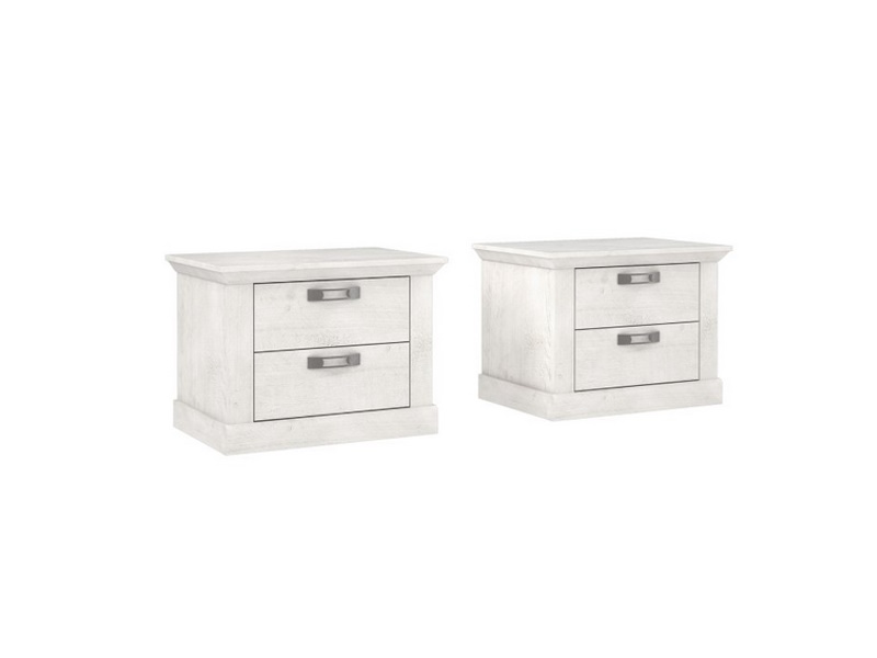 Szafka nocna będzie doskonałym uzupełnieniem sypialni romantycznej lub w stylu angielskim. Szafka wyposażona w dwie szuflady to idealne miejsce na lampkę nocną. Biały, postarzany dekor oraz masywny wieniec i cokół nawiązują do stylu całej kolekcji. Metalowe uchwyty w kolorze starego srebra dodają szyku i elegancji.