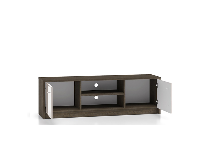 Szafka RTV Avante 06 to idealny mebel pod Twój telewizor czy gramofon. Dwie zamknięte wnęki tworzą bardzo pojemną przestrzeń do przechowywania, a otwarte półki oraz szeroki blat w prosty sposób pomogą uporządkować Twoje sprzęty multimedialne.