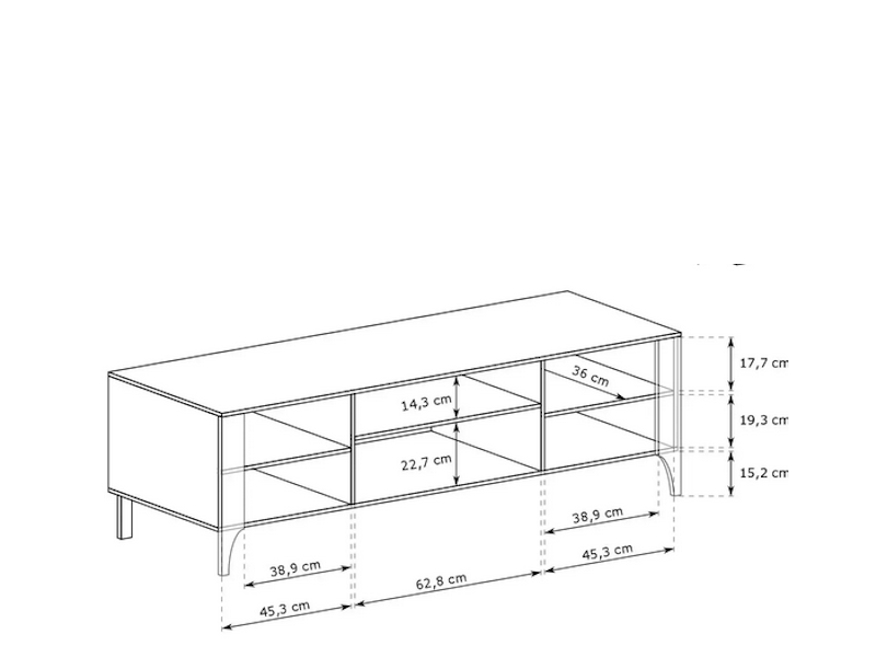 Dodatkowo otwarta przestrzeń na sprzęt RTV pozwala na wygodne ustawienie odtwarzaczy, konsoli czy dekoderów. Solidne nogi zapewniają stabilność oraz odporność na obciążenia.