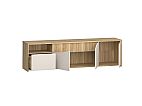 Szafka RTV z kolekcji POEM będzie podstawą strefy rozrywki w Twoim salonie. Na blacie możesz ustawić telewizor o wielkości do 84 cali. (3) szafki, (1) szuflada i (1) wnęka otwarta pomogą w komfortowym przechowywaniu sprzętu RTV. Natomiast otwory w tylnej ścianie szafki umożliwią łatwą organizację kabli.