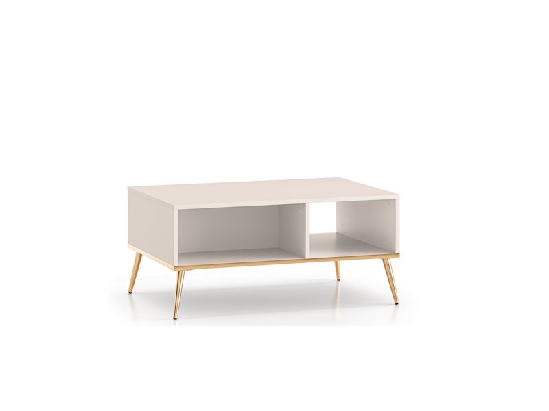 4-5 tyg.Stolik kawowy Selgin 07 to mebel idealny do pokoju dziennego. Ustawiony w centralnej części salonu stanie się nieodzownym elementem Twojego wnętrza. Postawisz na nim filiżankę kawy, odłożysz czytaną gazetę, a pilot od telewizora będziesz mieć zawsze pod ręką. Szeroki blat pozwoli wyeksponować na przykład Twoje ulubione albumy. Dwie pojemne wnęki pod blatem to świetne miejsce na przechowanie książek, świec czy małych rzeźb. Bryła mebla posadowiona jest na stabilnych, wysokich nóżkach wykonanych z wytrzymałego metalu. Podwójnie galwanizowane nogi w złotym wybarwieniu gwarantują wieloletnie, wygodne użytkowanie. Meble z kolekcji Selgin łączą w sobie wysoką funkcjonalność z zachwycającym designem.