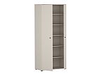 Wysoka czterodrzwiowa szafka w stylowym piaskowym kolorze to elegancka odpowiedź na potrzeby uporządkowanej garderoby w niewielkich przestrzeniach. Tym, co ją wyróżnia, jest funkcjonalnie podzielona przestrzeń - cztery szafki, w których znajdziesz sześć półek. Wnętrze szafki umożliwia przemyślaną segregację ubrań, dodatków i bielizny, dzięki czemu wszystko ma swoje miejsce. Smukła bryła i neutralny, ciepły odcień piasku wprowadzą do wnętrza spokojną, nowoczesną estetykę. Minimalistyczne, czarne uchwyty typu gałka dodają subtelnego kontrastu i ułatwiają codzienne użytkowanie. Szafa to praktyczny i stylowy element wyposażenia idealny do salonu, pokoju młodzieżowego, sypialni czy przedpokoju.