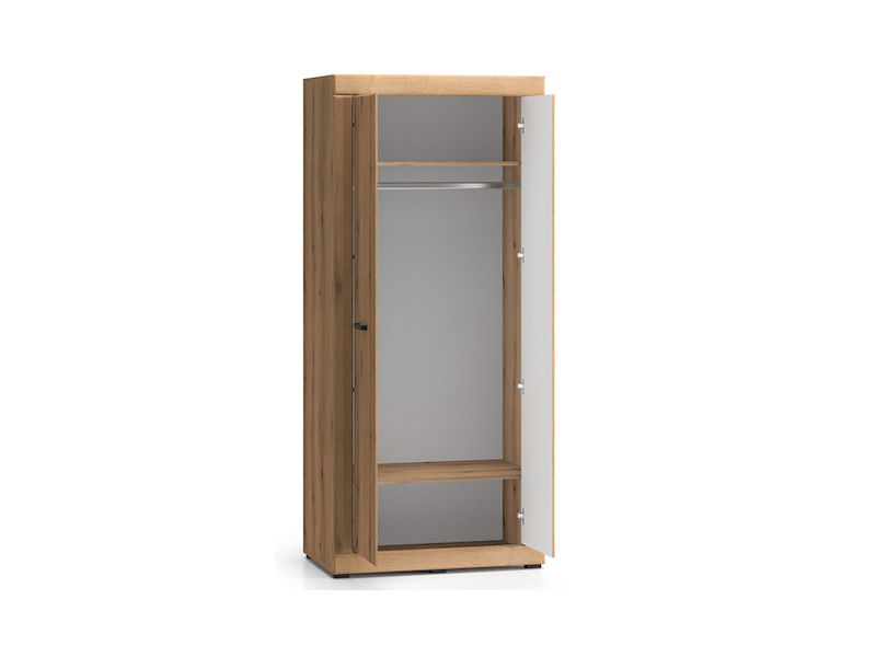 Dwudrzwiowa szafa Dora 01 to mebel, w którym przechowasz swoją odzież, dodatki oraz domowe tekstylia. Dzięki solidnemu drążkowi umieszczonemu na całej szerokości bryły, z łatwością powiesisz płaszcze, garnitury czy sukienki. Duża pojemność górnej i dolnej wnęki pozwoli schować na przykład pościel lub ręczniki. Wybierz szafę Dora i zachowaj porządek w swoim wnętrzu.
