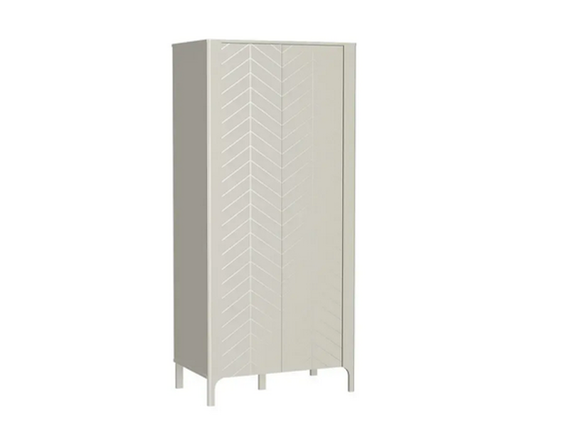 Szafa MM-7 łączy elegancki minimalizm z funkcjonalnością. Czarna konstrukcja z geometrycznym wzorem w jodełkę nadaje wnętrzu nowoczesny styl.
