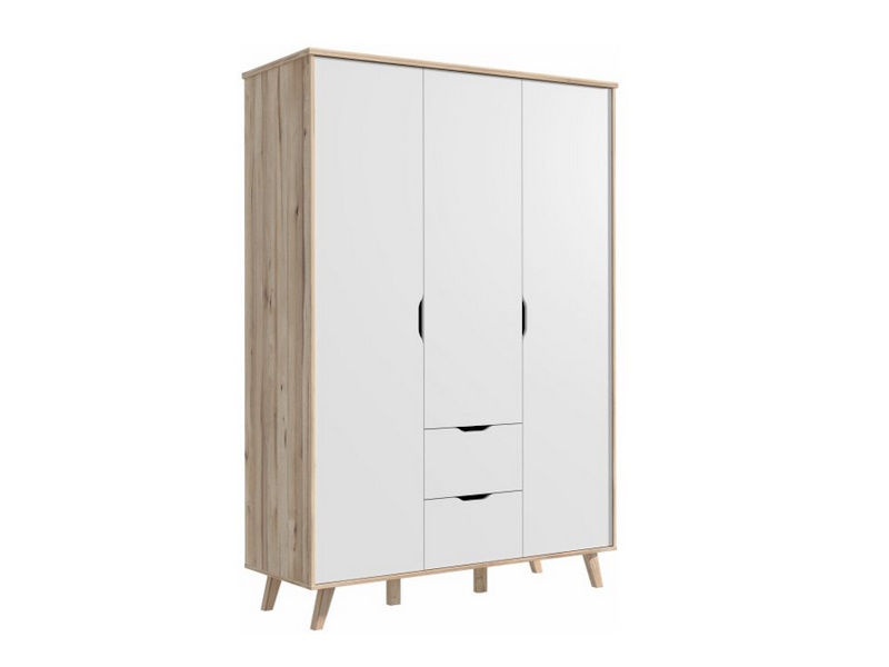 Szafa ubraniowa w stylu nowoczesnym w dekorze Deski Dębowej oraz Białego idealnie sprawdzi się we wnętrzach takich jak sypialnia, pokój młodzieżowy, przedpokój, czy też garderoba. Dzięki frontom wykończonym w kolorze białym wpasuje się w wygląd większości pomieszczeń.