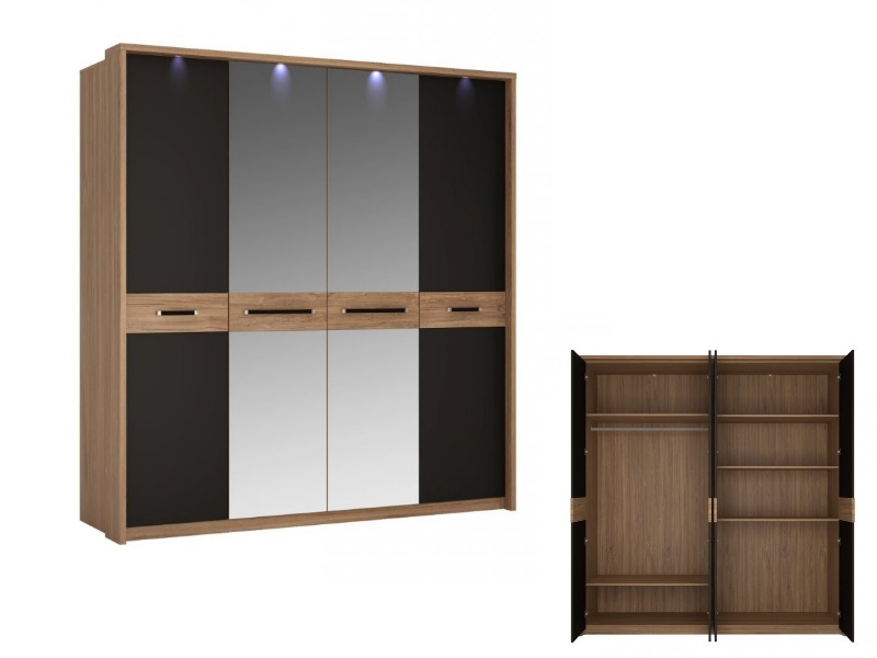 3-5 tyg.Szafa TYP-MOAS-02 z lustrem i 4 pkt oświetleniem Flash zintegrowanym z korpusem, które zaraz po otwarciu drzwi szafy, włącza się i oświetla całą garderobę.