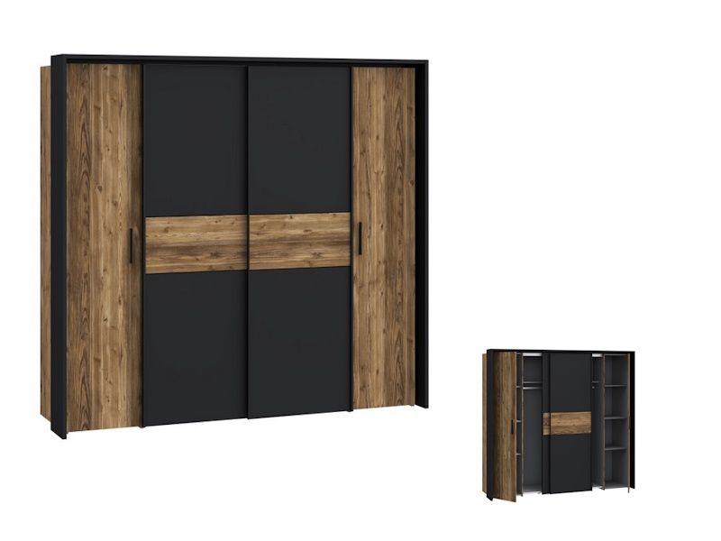 4-drzwiowa szafa doskonale sprawdzi się we wnętrzach urządzonych w stylu loftowym i rustykalnym, w szczególności w takich pomieszczeniach, jak sypialnia. Ma dobrze zorganizowaną przestrzeń: drążek ubraniowy i 4 regulowane półki. Dzięki takiemu układowi, w szafie możesz przechowywać różnorodne rzeczy - nie tylko odzież, lecz także sprzęt sportowy i hobbistyczny, dokumenty czy zdjęcia.