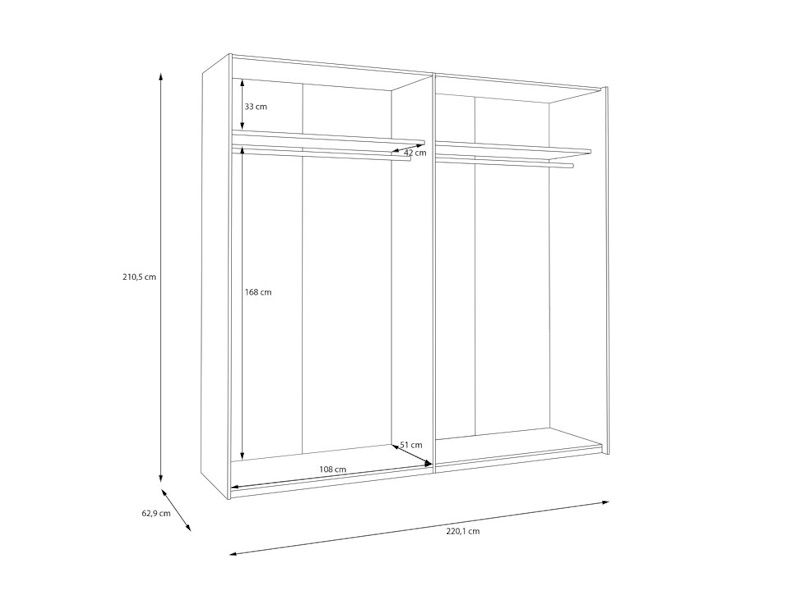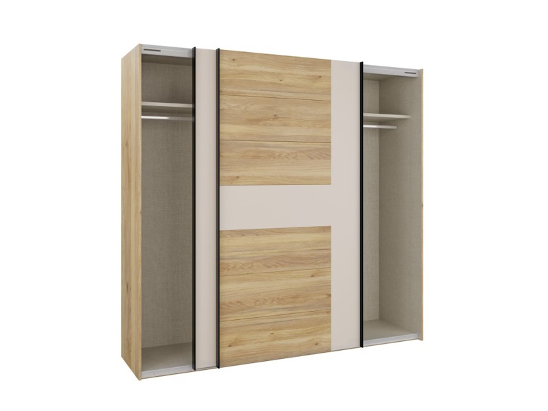 Szafa BELLEVUE będzie funkcjonalnym i wyróżniającym się elementem wystroju Twojego mieszkania. Duża szafa została podzielona na 2 cześci, a każdą z nich wyposażono w drążek na wieszaki i półkę. Dzięki takiej organizacji, łatwo podzielisz się miejscem na ubrania ze swoim partnerem. Połącz szafę z drzwiami przesuwnymi WHENUA z innymi meblami z kolekcji, aby stworzyć spójną aranżację wnętrza.