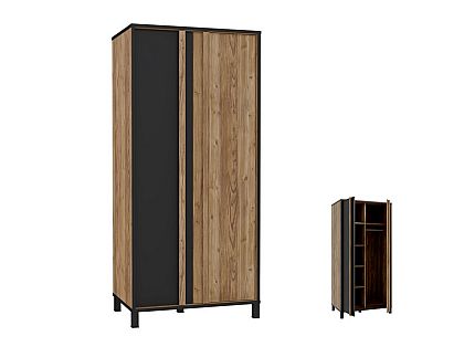 Szafa HAYATO dopełni loftową aranżację sypialni lub tę w stylu modern loft. Przemyślany podział wnętrza, 3 półki i 2 drążki zapewniają miejsce do przechowywania ubrań i dodatków. Możesz uzupełnić szafę o dodatkowe półki, oświetlenie, listwy okalające i komodę wewnętrzną, dopasowując ją do swoich potrzeb. Tę 2-drzwiową szafę możesz ustawić w loftowej sypialni, ale też przedpokoju lub wydzielonej garderobie. Lustrzany front optycznie rozjaśni pomieszczenie i zapewni możliwość przejrzenia się w wybranej kreacji.