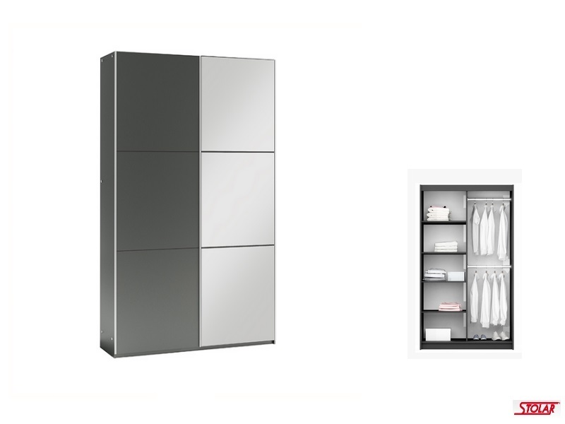 Zgrabna, proporcjonalna bryła, duże lustro oraz poziomy trójpodział powierzchni drzwi dodaje szafie współczesnego charakteru.