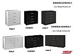 W opcji dodatkowej od producenta szafy dostępne są komody Genewa 1 i Genewa 2 w kolorach: Biały, Czarny, Grafit.