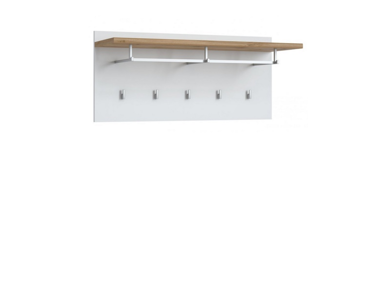 Powstały z płyty wiórowej laminowanej w odcieniu Biała Alpejska i Dąb Wotan prezentuje nowoczesny efekt stylistyczny, wzmacniany przez praktyczny reling na wieszaki, wykonany z tworzywa sztucznego. Minimalistyczny, nowoczesny styl relingu i pięciu haczyków/wieszaków pozwalają uzyskać zakładany efekt. Półka na kapelusze, utrzymana w kolorystyce naturalnego drewna dodaje panelowi funkcjonalności.