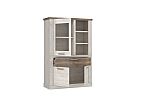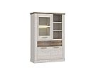 Elegancka witryna wykonana w połączeniu pięknych dekorów- Pinia Biała i Dąb Antyczny wprowadzi do pomieszczenia dużo stylu i klasy. Jej praktyczny projekt bardzo ułatwi organizację w salonie lub jadalni. Witryna posiada trzy otwarte i dwie przeszklone półki, pojemną szufladę oraz dużą szafkę otwieraną za pomocą pary drzwiczek.