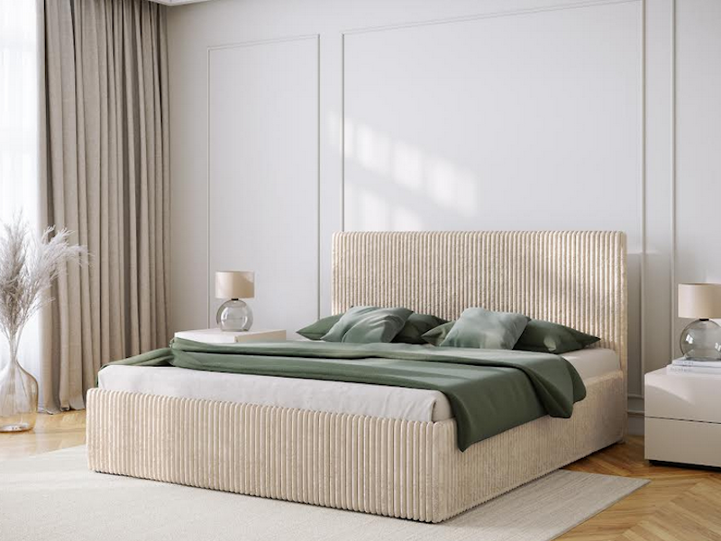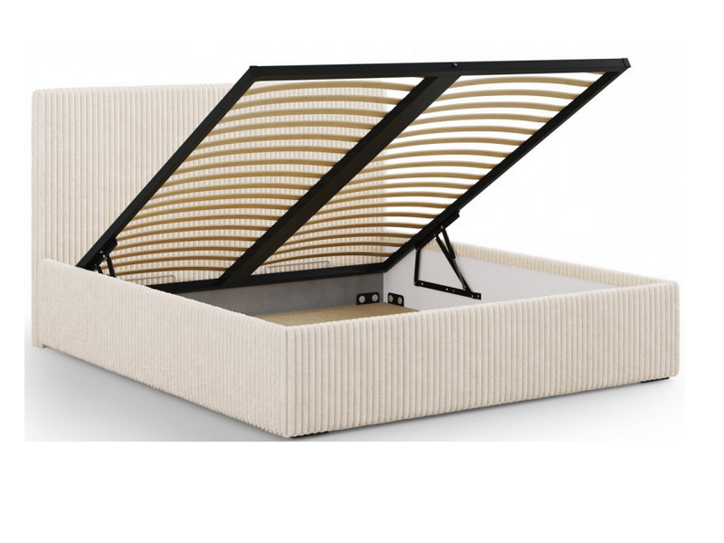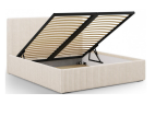 Klasycze łóże z pojemnikiem na pościel oraz stelażem otwieranym do góry.