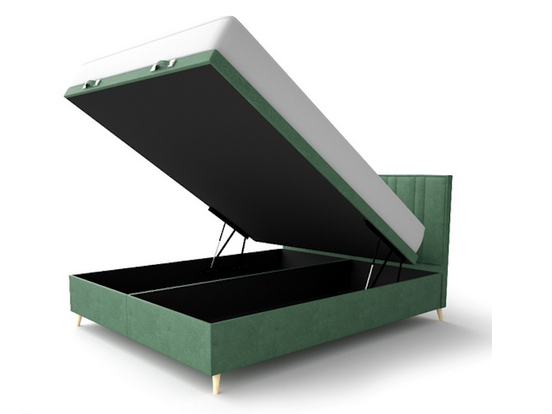 Pokrywa pojemnika podnoszona jest za pomocą siłowników gazowych, wyposażona została w dwa praktyczne uchwyty. Dodatkowym atutem tego łóżka są mini sprężyny pocket, które znajdują się w pokrywie.